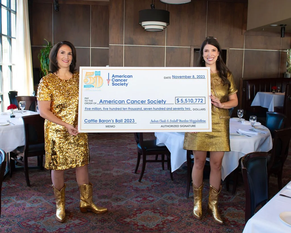The CBB Fall Luncheon for Past Ball Chairs and active members was hosted at Truluck’s Ocean’s Finest Seafood and Crab. 2024 Chairs Lora Farris and Marjon Zabihi Henderson welcomed the committee, and then it was time for the big announcement of the day! 2023 Chairs Andrea Cheek and Isabell Novakov Higginbotham presented an astonishing check for $5.5 million, making the 50th anniversary the most successful Cattle Baron’s Ball to date!
